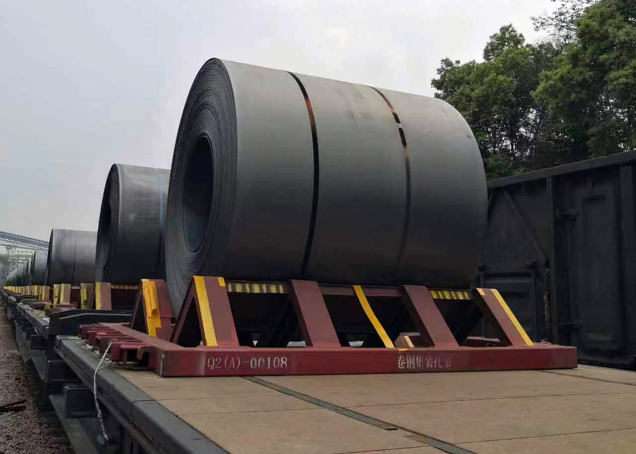 使用鐵路敞車裝載時,Q系列卷鋼集裝托架與敞車補強座進行加固;使用鐵路平集共用車裝載時,Q系列卷鋼集裝托架與平集共用車集裝箱鎖進行加固;卷鋼橫向臥裝與托架V形槽內,保證了卷鋼鐵路運輸的安全性。